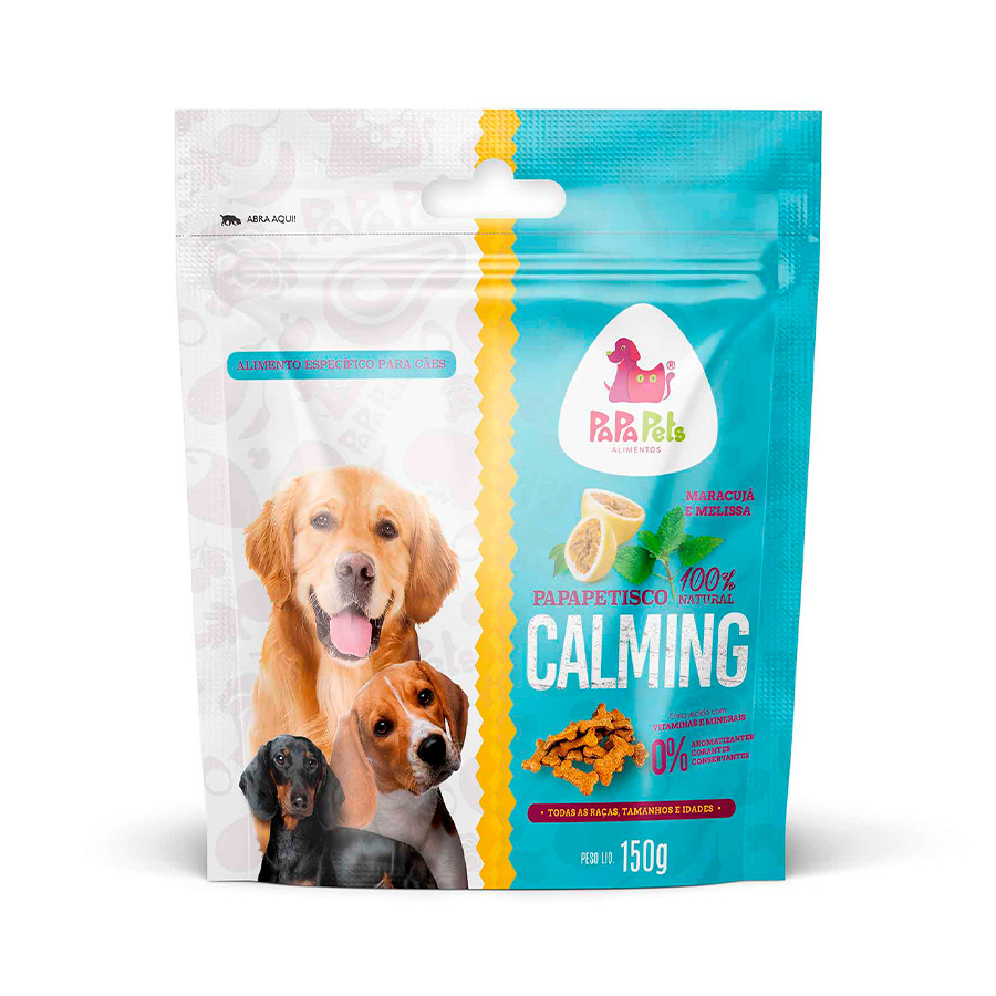 O Petisco Natural Papapetisco Calming é um biscoito funcional desenvolvido pela PapaPets, destinado a cães de todas as idades e tamanhos. Formulado para auxiliar na redução do estresse e promover um comportamento mais calmo, este petisco é 100% natural, livre de conservantes, corantes, aromatizantes e aditivos químicos.