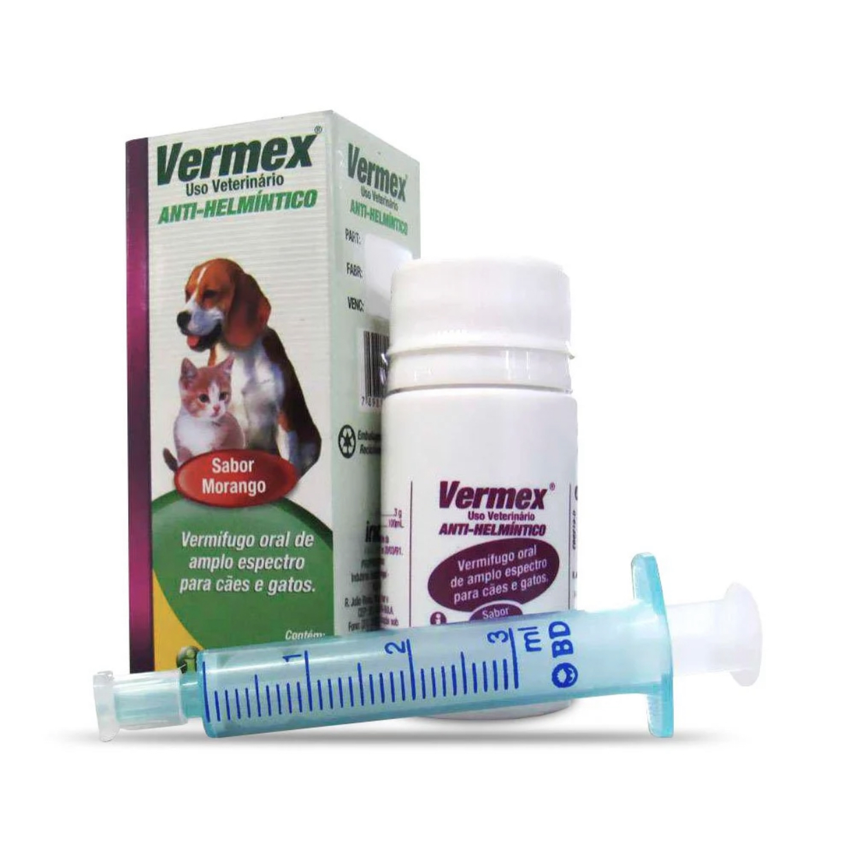 O Vermex é um vermífugo oral de amplo espectro, indicado para cães e gatos no combate a vermes nematódeos, como Ancylostoma caninum, Toxocara canis e Toxascaris leonina. É recomendado para animais a partir de 15 dias de vida, em dose única, repetindo uma vez ao mês até o sexto mês de vida. O produto não requer jejum prévio e pode ser administrado junto com uma porção de alimento.